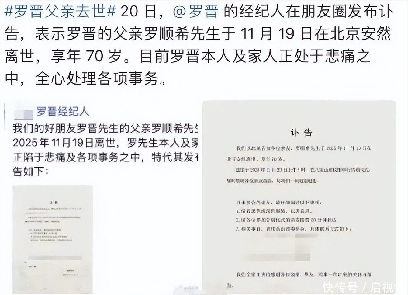 然而,就在质疑声愈演愈烈之际,罗晋父亲去世的消息突然传来,瞬间扭转了整个舆论走向。
